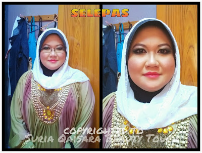 Nasib baiklah rumah puan ni sgt dekat dgn rumah saya yg jaraknya lbh kurang 10min, saya bergegas ke rumahnya. Start mekap jam 4pm, habis 5.30pm disebabkan bonda puan Hilwa nak saya makeup kan juga, tambah lg rezeki. Alhamdulillah..